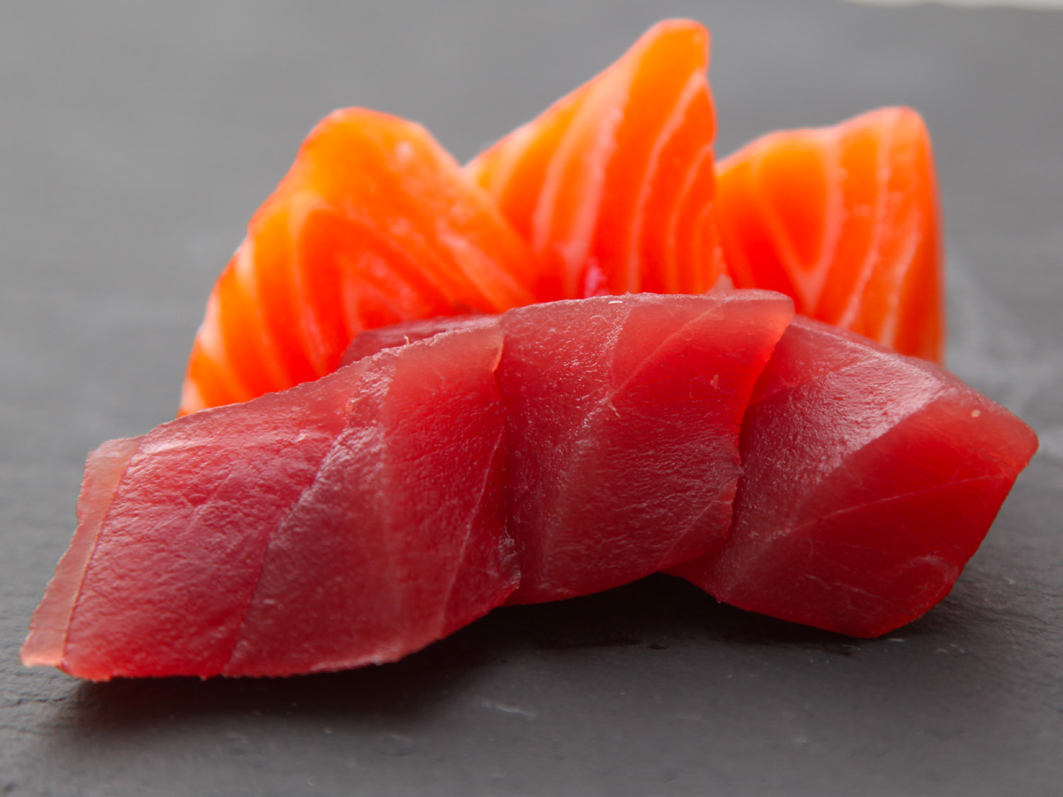 Soupe, Salade, Grand Bol de Riz Vinaigré avec tranche de poisson cru